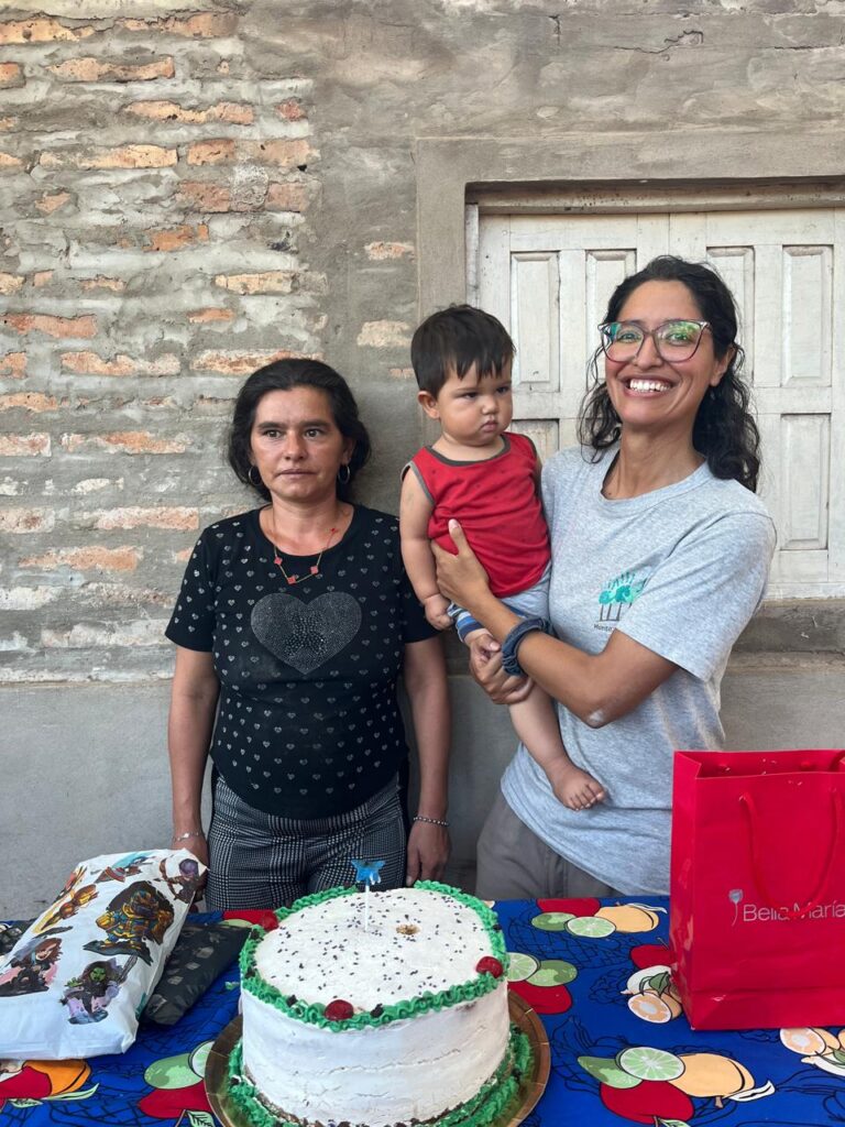Ese mismo sábado, la cooperadora de la escuela de Boquerón hizo venta de pollos para recaudar fondos. Con lo que juntan pueden arreglar la institución o comprar algo que necesiten, como heladera, ventilador, aire acondicionado. No pude comprar porque habían vendido todo, así que me invitaron a almorzar. Disfrutamos de unos pollos deliciosos a la parrilla, chori y mandioca, con Basilio, cuya hija va a la primaria, la familia de Lucía, que tiene un hijo en primaria y una hija en jardín, y la familia de las dos maestras que dan clases y viven ahí mismo. Después fui a saludar a Mateo, que cumplió 1 año. Vive en Boquerón, con su mamá, su papá y sus dos hermanos. Cuando llegué, había música y partidos de truco. Tomamos mate, cantamos el feliz cumple, nos sacamos fotos con Mateo, cortamos la torta, bailamos chamamé. Celebrar la vida siempre convoca, siempre hace bien.