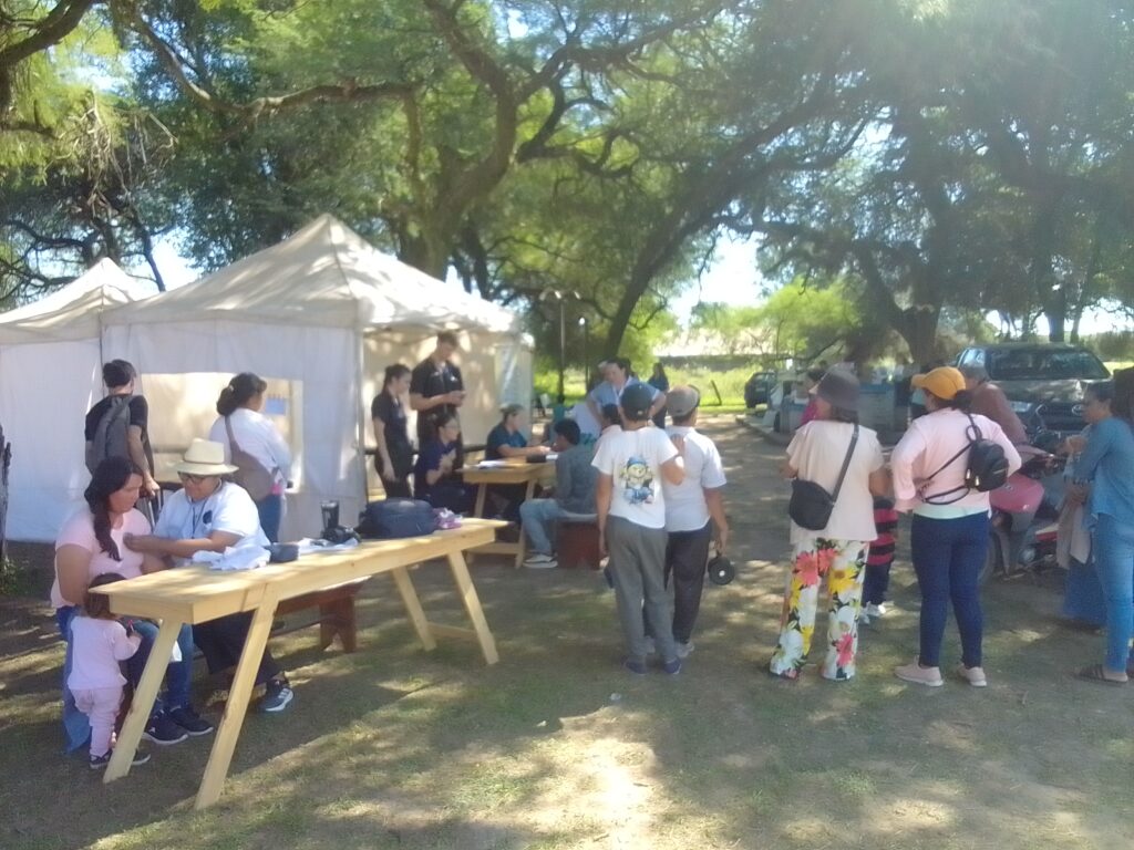 El equipo atendió en el hospital la misma tarde que llegó, exclusivamente a personas con discapacidad. A la mañana siguiente, estaban a las 8 en Boquerón, armando los gazebos a modo de consultorios, improvisando mesas que no alcanzaban. Almorzamos empanadas hechas con ingredientes que donó la comunidad y amasadas por algunas mujeres también de ahí. A eso de las 3 de la tarde volvimos, para que a las 4 estuvieran en el hospital, recibiendo esta vez al público en general. Esa noche terminaron de atender a las 10. A las 9 de la mañana siguiente llegaban a El Asustado. Armaron nuevamente los gazebos con lo que precisaba cada especialidad. Después del mediodía comimos, gracias a esa comunidad, chivo, pollo, papa, mandioca y pan casero. Por la tarde, otra vez al hospital del pueblo, para levantarse a la mañana siguiente y volver en sus vehículos a Córdoba, Rosario y Buenos Aires.